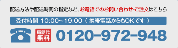 配送の件など、ご質問に関しては【電話代無料】の0120-972-948まで