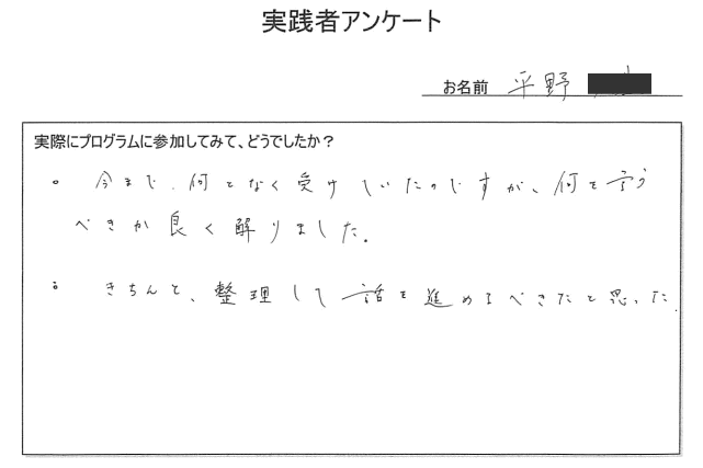 しっかりと把握することが出来るようになり、人に伝えることが難しくなくなりました。