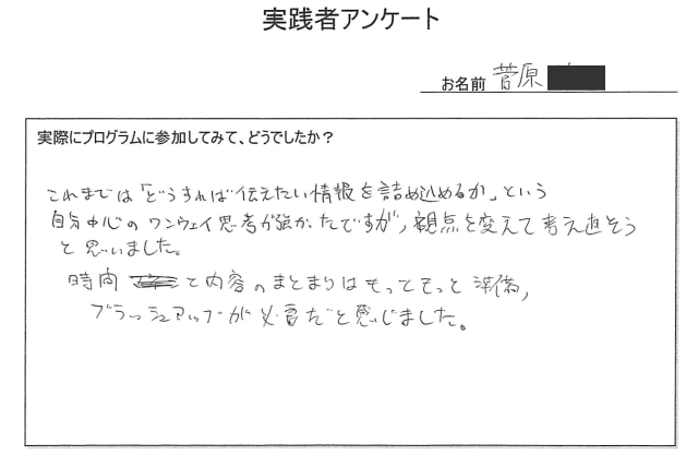 何度か練習しているうちに、自分の言いたいことを簡潔にまとめて言うことができ、